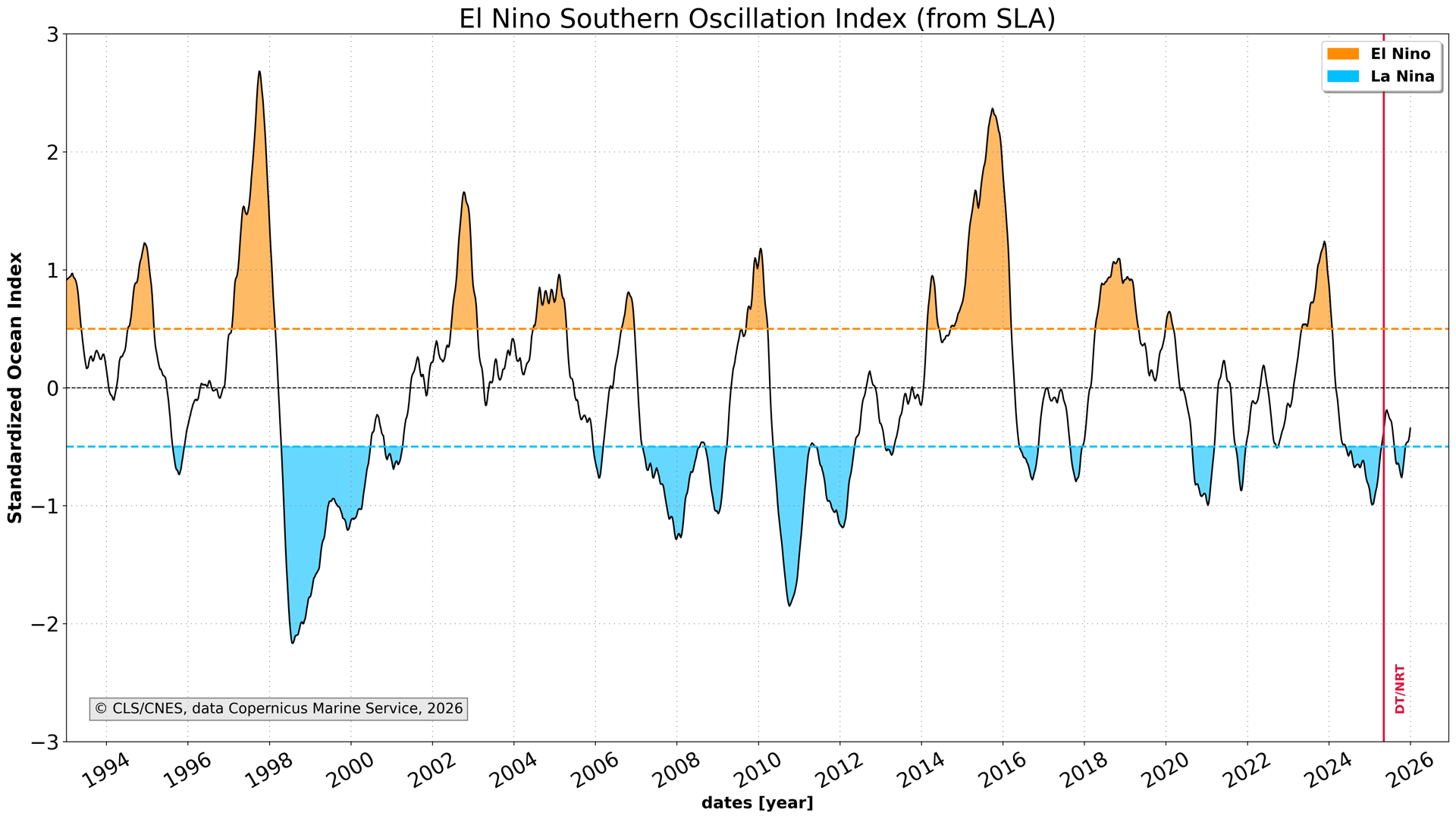 The El Niño Southern Oscillation maps and indexes have been updated with the DT2024 version of the DUACS input data.