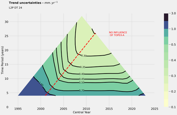 - Sentinel-6 MF (up to 2023-12-31): +0.77 ± 3.95 mm/yr