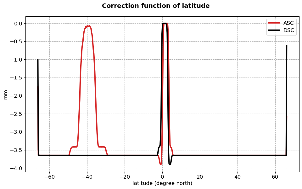 Range latitudinal empirical correction for Jason-1/2/3 GDRRange latitudinal empirical correction for Jason-1/2/3 GDR This dataset provides an abacus to correct from the effect of a rounding error in the ground processing of the Jason-1, Jason-2 and Jason-3 missions on the altimeter range estimations. |  |