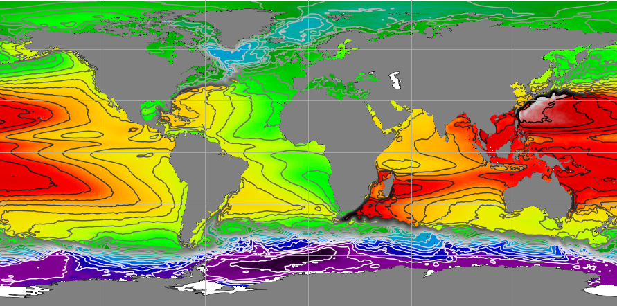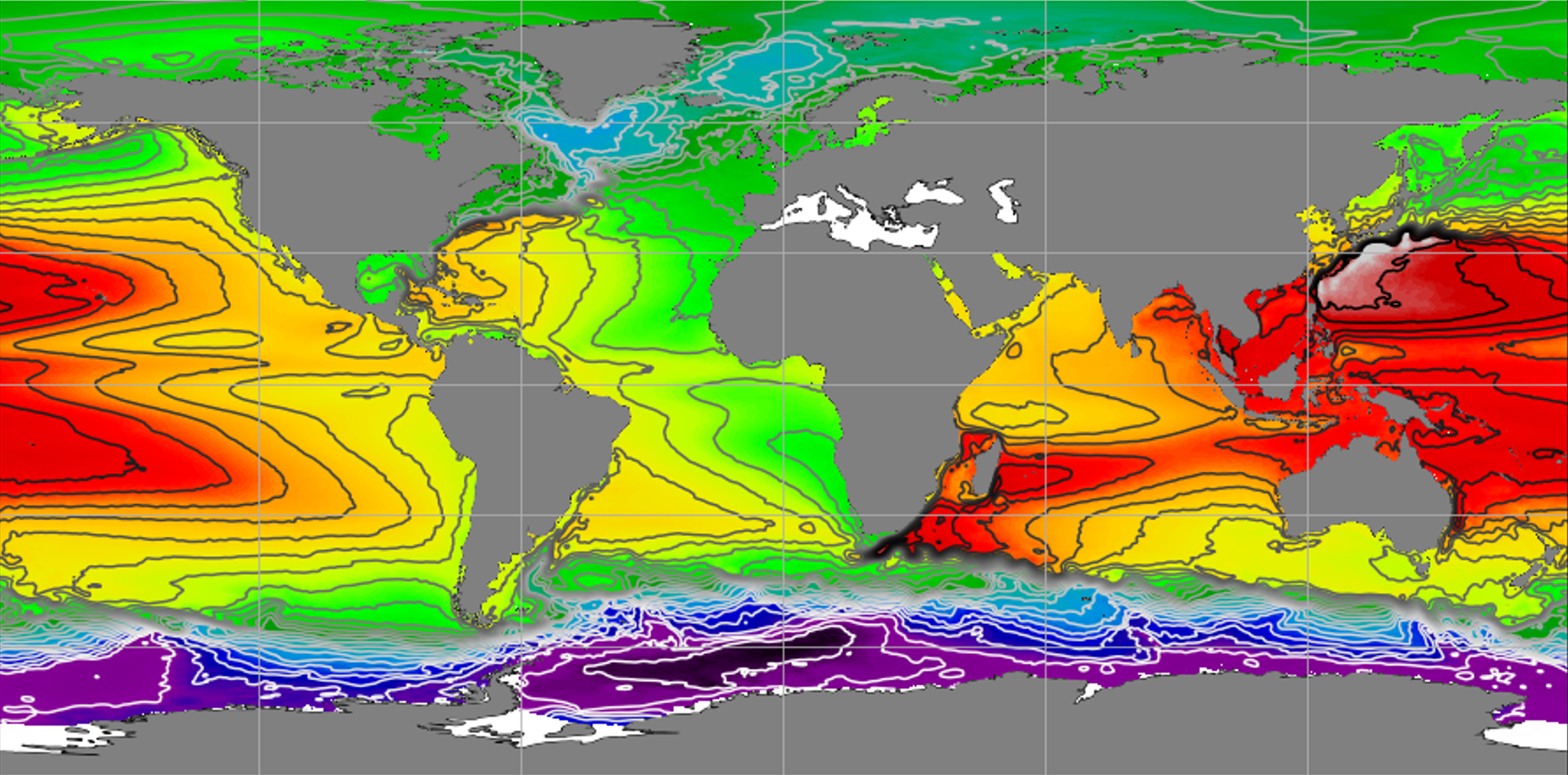 Mean Sea SurfaceMSS_CNES_CLS2022 Mean sea surface height wrt T/ P or WGS84 reference ellisoid computed on a 20 years period (1993-2013) with 29 years of altimetry data. This Mean Sea Surface (also called MSS) corresponds to marine geoid undulations (±120 meters ) and to the "permanent" sea level rise (1-2 meters). |  |